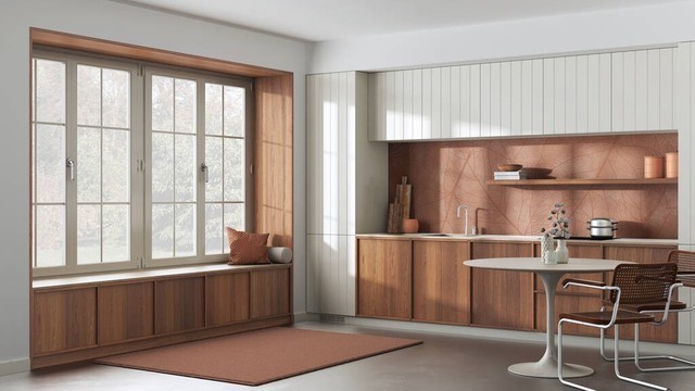 柜子上最常见的颜色对比,比如地柜和吊柜: